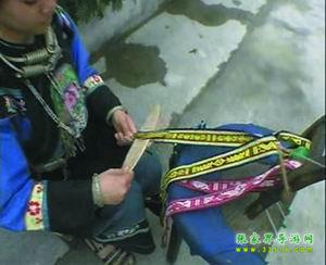 苗家花帶,織花帶,是苗家姑娘最盛行最喜愛的一種習俗。在苗家,從女兒長到七八歲起,母親就要叫他做針線活,待到十歲左右就交他學織花帶,如果母親技藝不高,還要請寨子里花帶技術最高的婦女來教。又得女孩子,從母親或姐姐那里初步學到織花帶技術后,就在本寨子邀同齡伙伴,三五個在一起,互相切磋技藝。待到編制技術日趨成熟后,姑娘也大了,就往往一個人躲在房中編制出色鮮艷的花帶,風險少女的情愛。苗家姑娘,往往拿自己編制的花帶作為禮品相贈,特別是姑娘有了意中人,就吧花帶作為愛情的信物相贈,以表示以身相許,愛情純貞。