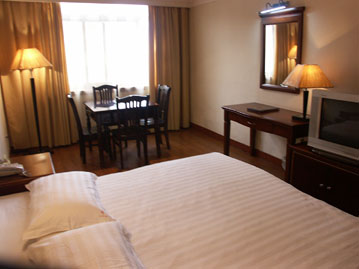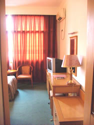 酒店簡介:賓館擁有豪華標(biāo)準(zhǔn)間間,普通標(biāo)間、彩電、空調(diào)、高檔地毯、電話、整體淋浴房等,二十四小時供應(yīng)熱水,餐廳、宴會廳能容納180人同時就餐,卡拉宋、美容美發(fā)、桑拿按摩、旅游車隊、商務(wù)部、票務(wù)中心等配套服務(wù)設(shè)施一應(yīng)俱全,是住宿、餐飲、旅游度假、休閑娛樂的理想場所。 地 址: