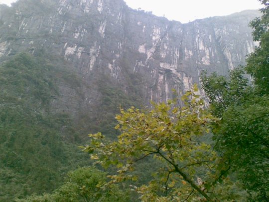 從玉鉆峰沿公路向北行2公里,但見溪谷兩岸石壁陡峭如削,高千仞,絕壁間石紋如畫,青白相間,加上有古木翠草點(diǎn)綴,如同畫屏。這就是“天門畫壁”。走過“天門畫壁”,便見三座石峰緊緊相連,這就是“相依巖”。高200余米,活象三個石人相依而立,靠前的一個是頭戴銀花首飾、身著百褶花羅裙的苗姑,緊靠后的一個是頭纏花帕、身穿對襟短衣的苗族男子,靠左的一個是頭纏絲帕、身著胸襟式土布衣的老媒人。