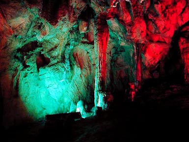 全只有一個裂縫狀的入口,由三組穴和18個“廳堂”組成,呈不對稱的樹枝狀展開,累計長達1870米,域總面積為84150平方米。內(nèi)通道曲折幽奇,怪石叢生。入約300米,環(huán)顧四周, 好似“山窮水復(fù)疑無路”,而仔細探尋,上方竟有尺許小,其圓如鏡,只容鉆入,鉆入之后,則是“柳暗花明又一村”,入大天,令人咋舌,三號內(nèi),那只聞其聲、難見其形的地下飛泉瀑布,聲若虎嘯雷鳴,使人毛骨悚然。行至深處,深潭擋路,一座又窄又滑的天生“小橋”飛架其上,令人望而卻步。二號后段則是一個福地天。深處的“天窗”猶如一彎朗月高懸,景觀奇異,叫人更加流連忘返。錫巖仙的石筍、石林、石柱、石幔琳瑯滿目,千姿百態(tài),鬼斧神工,維紗維肖。“珍珠傘”勝景,美無倫比。