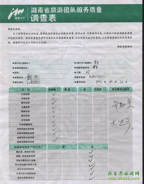 2011年4月13日魏先生一行27人旅游質(zhì)量反饋:爭取更大進(jìn)步