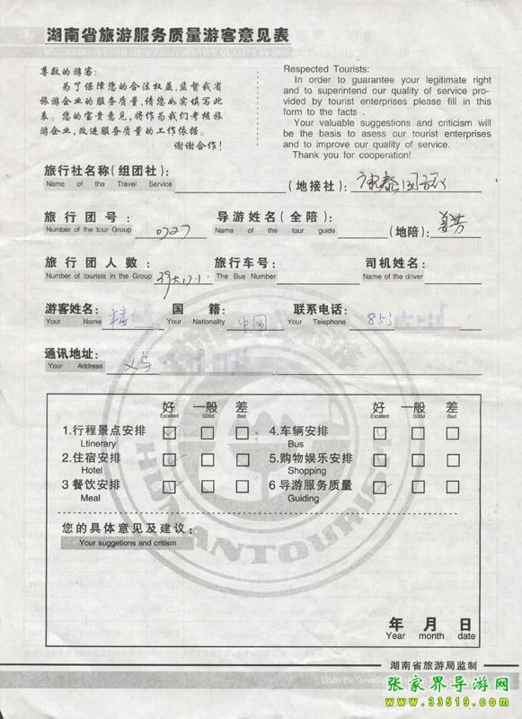 2009年7月27日義烏樓先生一行56人接待質量反饋單: