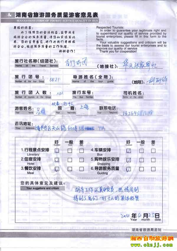 2010年4月21號上海呂小姐10位張家界鳳凰旅游質量反饋