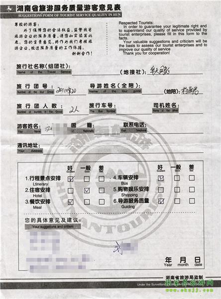 - 2011年10月5日黃先生一行17人旅游質(zhì)量反饋 [7847]