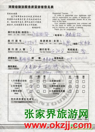 2009年11月9日馬來西亞駱先生一行31人旅游接待質(zhì)量反饋單: