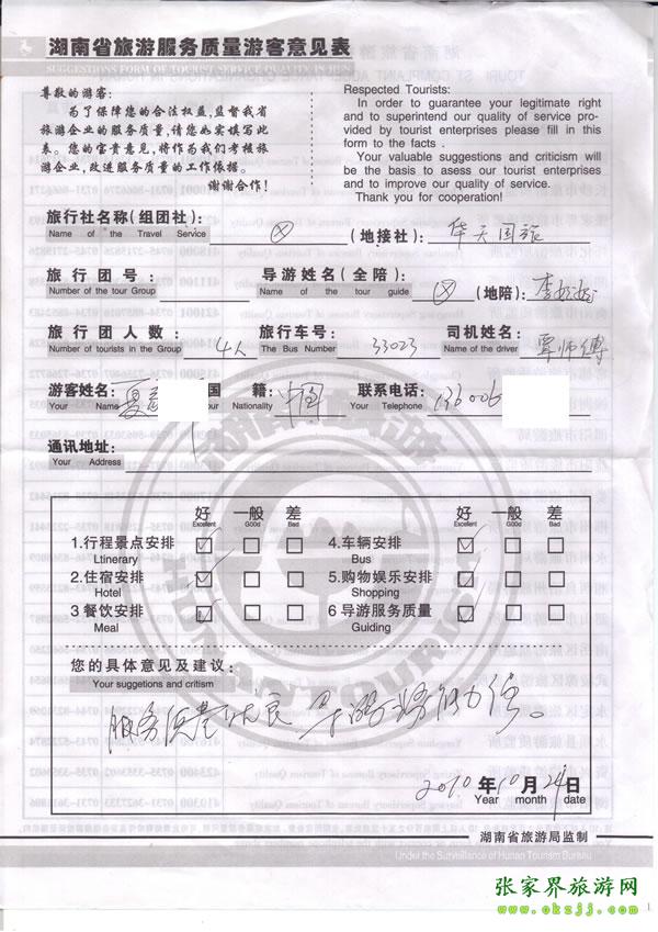 2010年10月24日 夏先生評(píng)價(jià)服務(wù)質(zhì)量?jī)?yōu)良,導(dǎo)游業(yè)務(wù)能力強(qiáng)