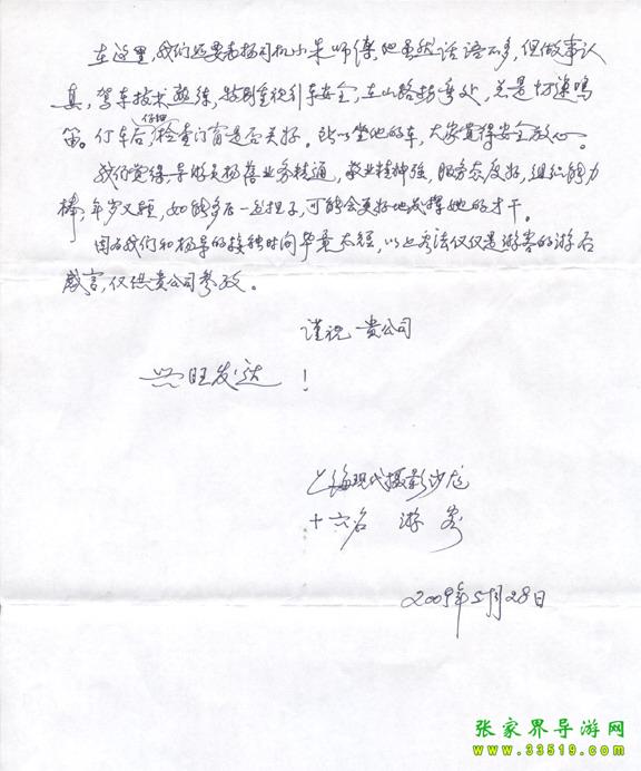 - 游客夏先生為表?yè)P(yáng)導(dǎo)游李姣姣寫來(lái)表?yè)P(yáng)信致我張家界... [14811]