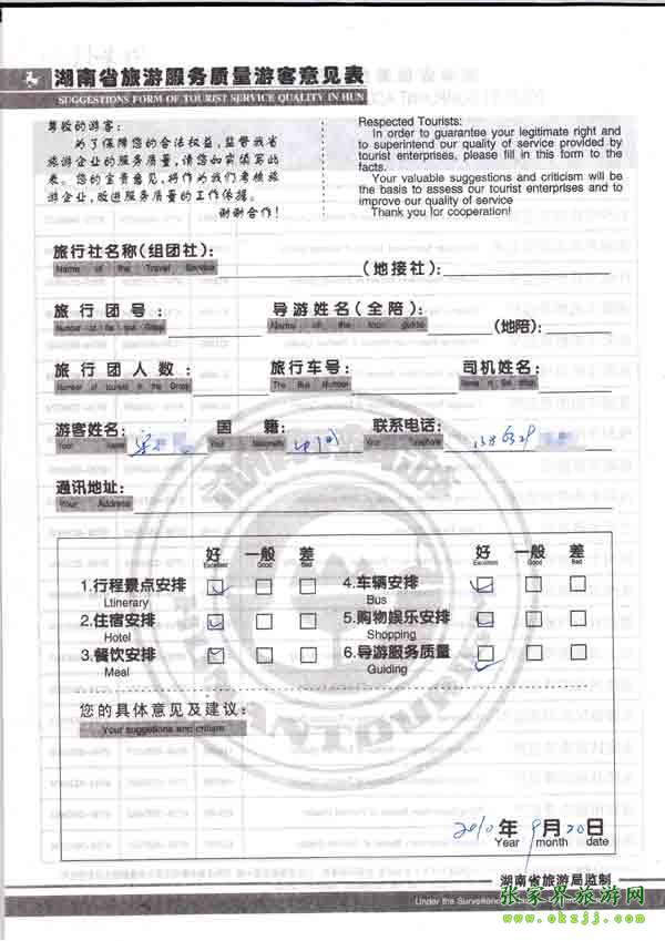 2010年9月20日宋小姐旅游質量反饋