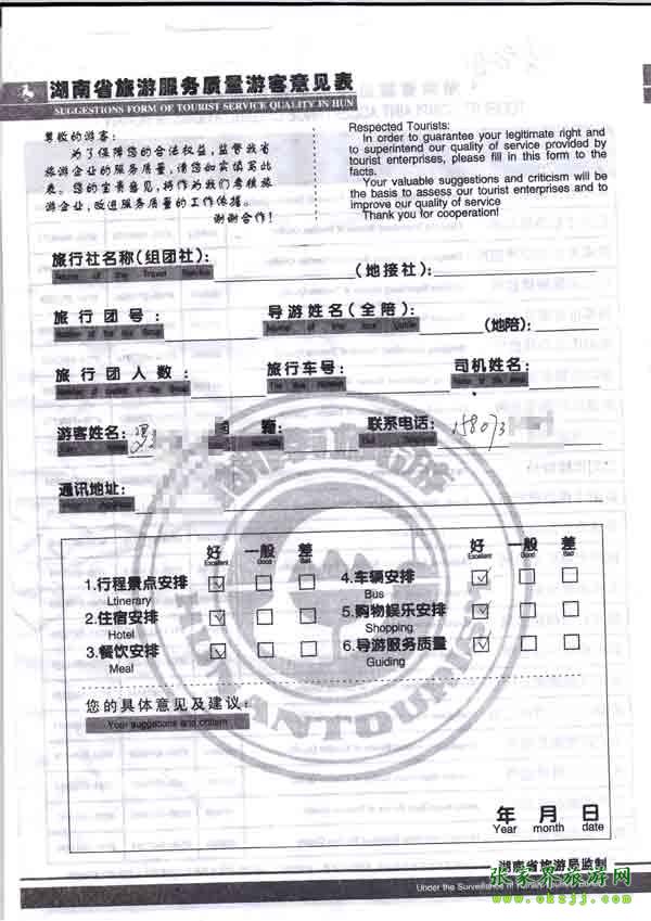 2010年10月12日羅先生旅游質(zhì)量反饋