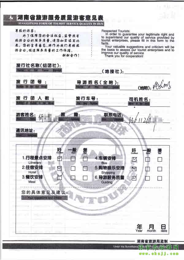 - 2011年10月26日張小姐一行18人旅游質(zhì)量反饋 [10482]