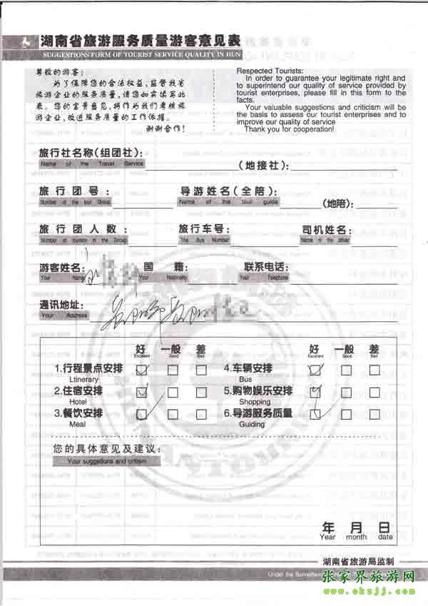 2010年8月6日岳陽劉小姐旅游質量反饋