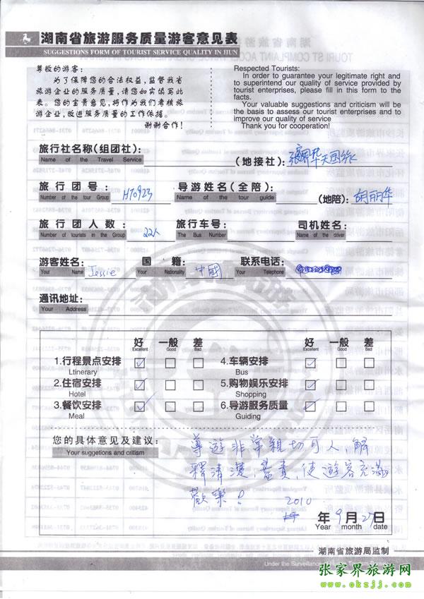 - 游客夏先生為表揚(yáng)導(dǎo)游李姣姣寫來表揚(yáng)信致我張家界... [14811]